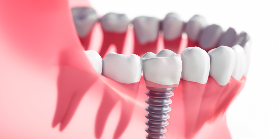 Dental implants are used to replace missing teeth and provide an alternative treatment option to a bridge. Dental implants are metal posts made from titanium that are surgically placed beneath your gums. Because implants fuse to the jawbone, they offer greater stability and comfort than conventional bridges or dentures.